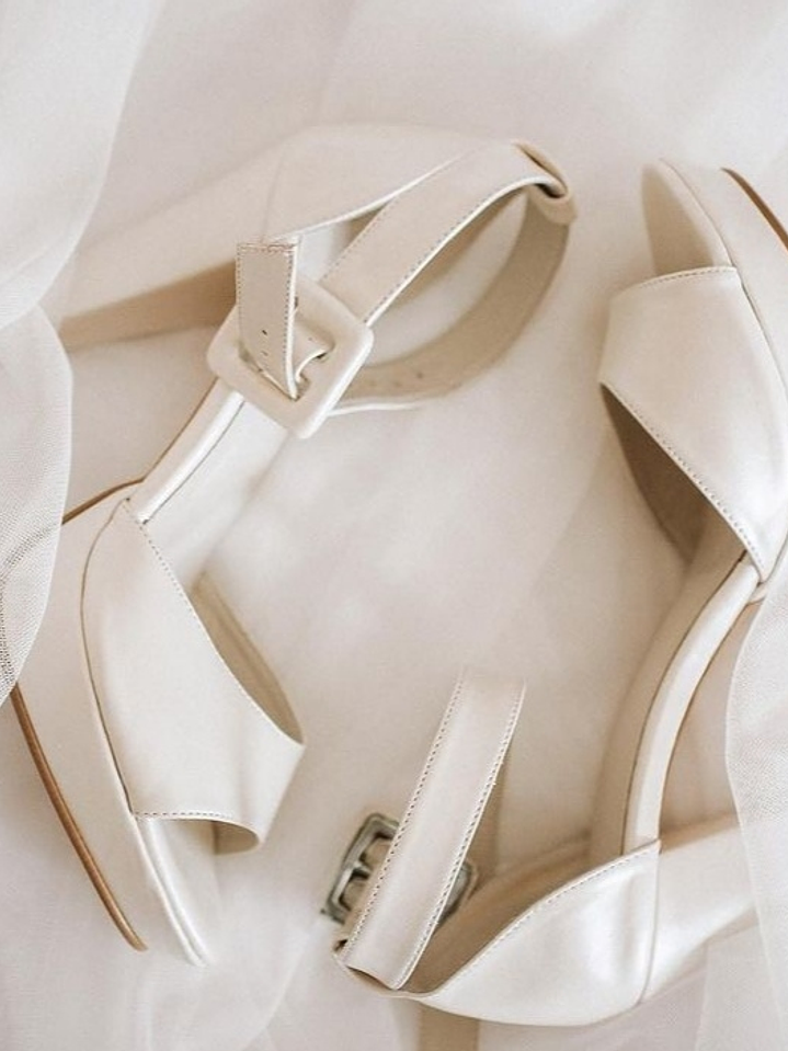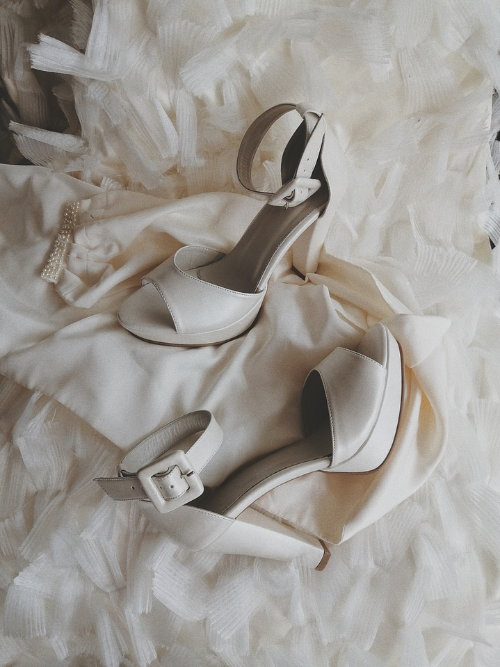 Bridal heels in pearl textile. Platform height: 1.5 cms. Heel height: 9.5 cms. Lining: 100% leather.